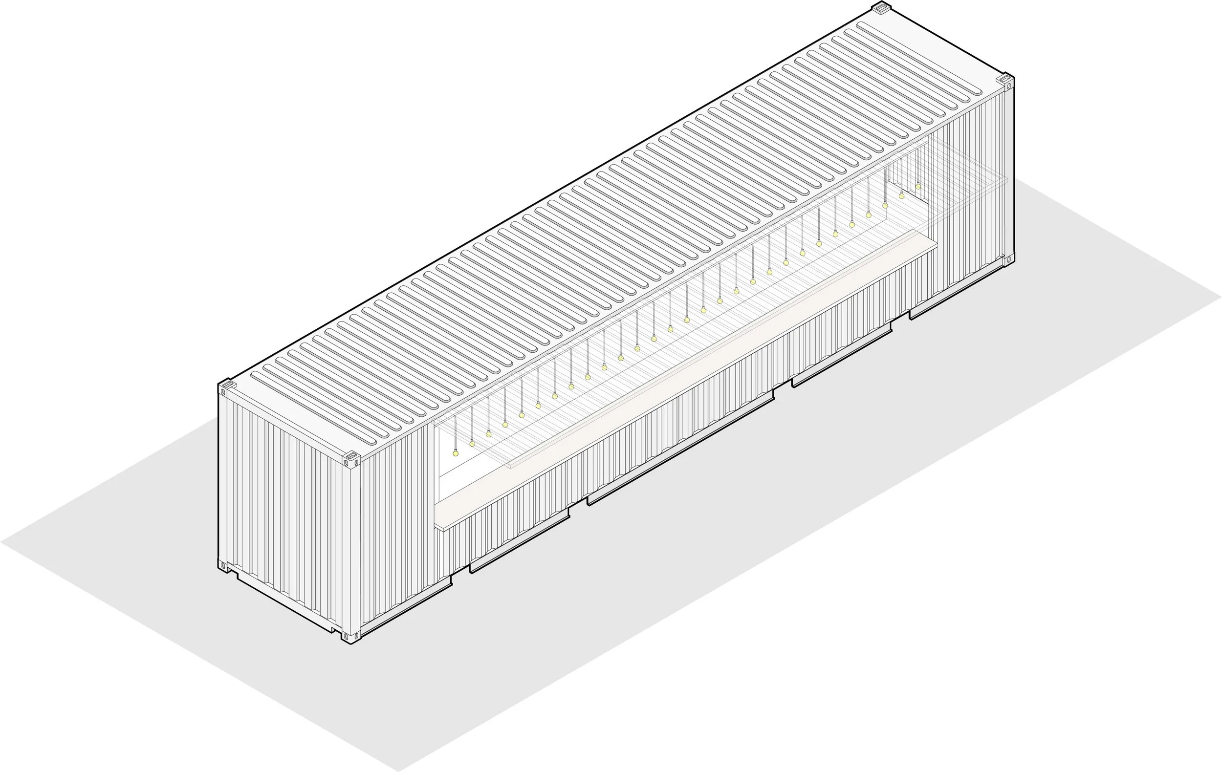 Looking for a refreshment? This single 40 foot container will be able to quench your thirst. This container bar provides a space for locals to gather and socialize outdoors with many options for refreshments.